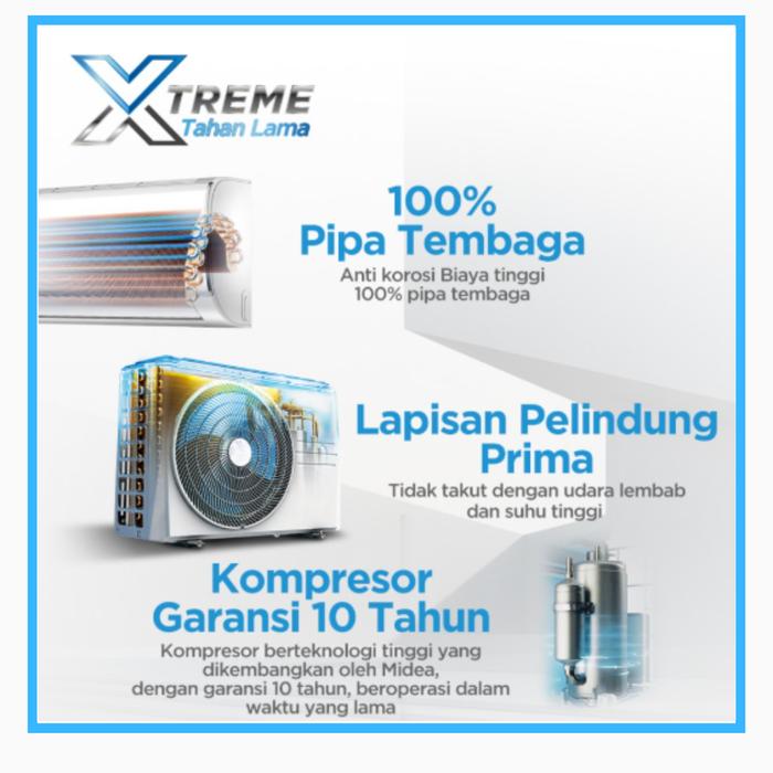 Midea AC 1 PK MSAF09CRN Xtreme Dura MSAFE R32 Pendingin 9000 Btu/h